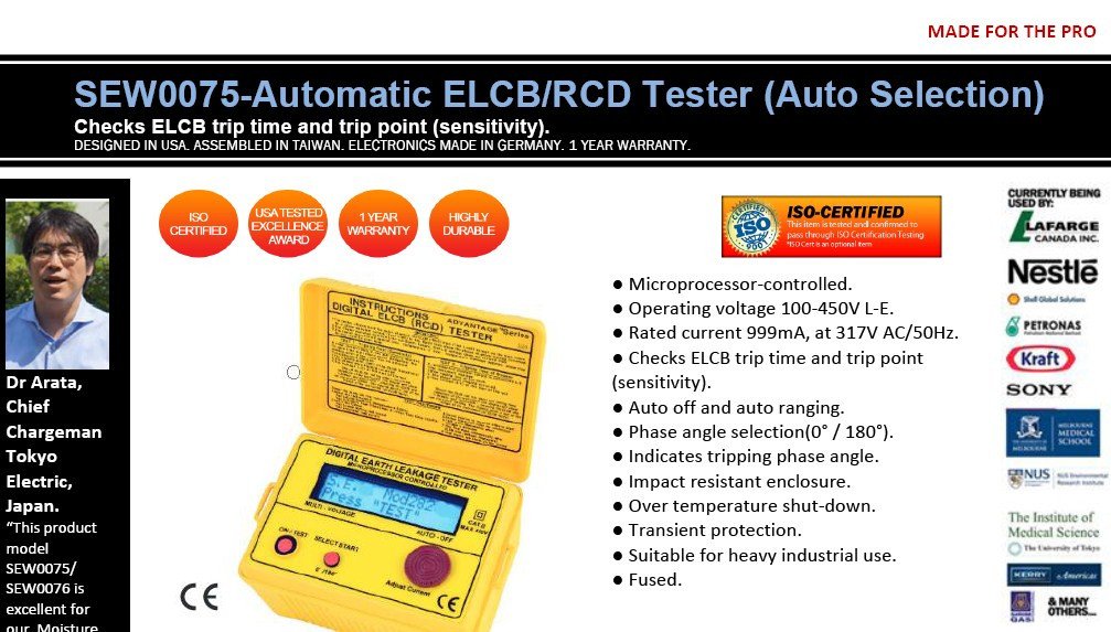 Featured item SEW0075-Automatic ELCB/RCD Tester (Auto Selection)