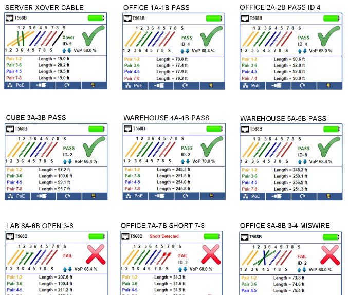 - Ability to define cable name, save cable tests and print ALL results (cable testing & network testing)